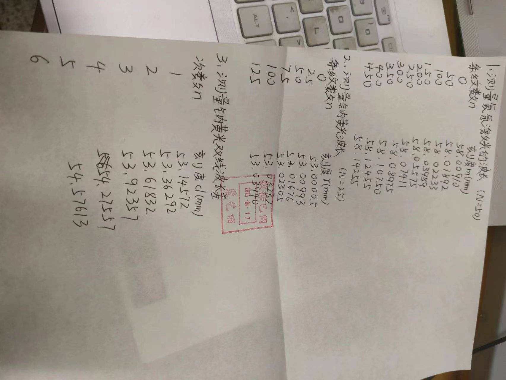钠黄光双线波长差测量数据表