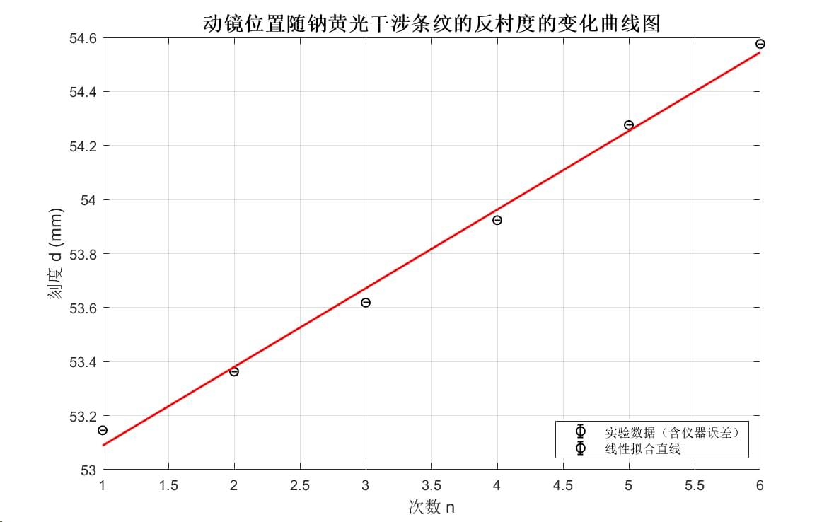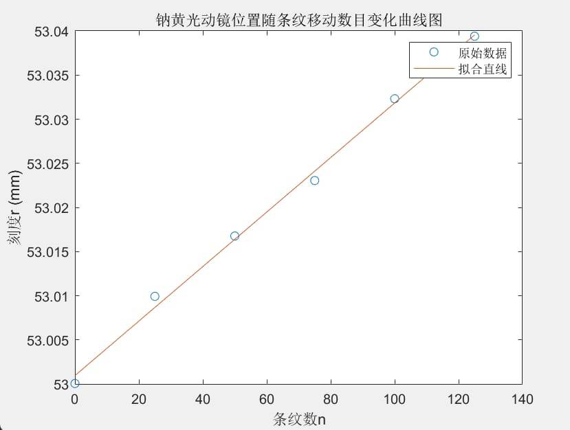 画出钠黄光动镜位置随条纹移动数目变化曲线图