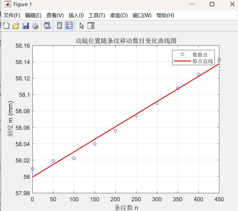 画出动镜位置随条纹移动数目变化曲线图