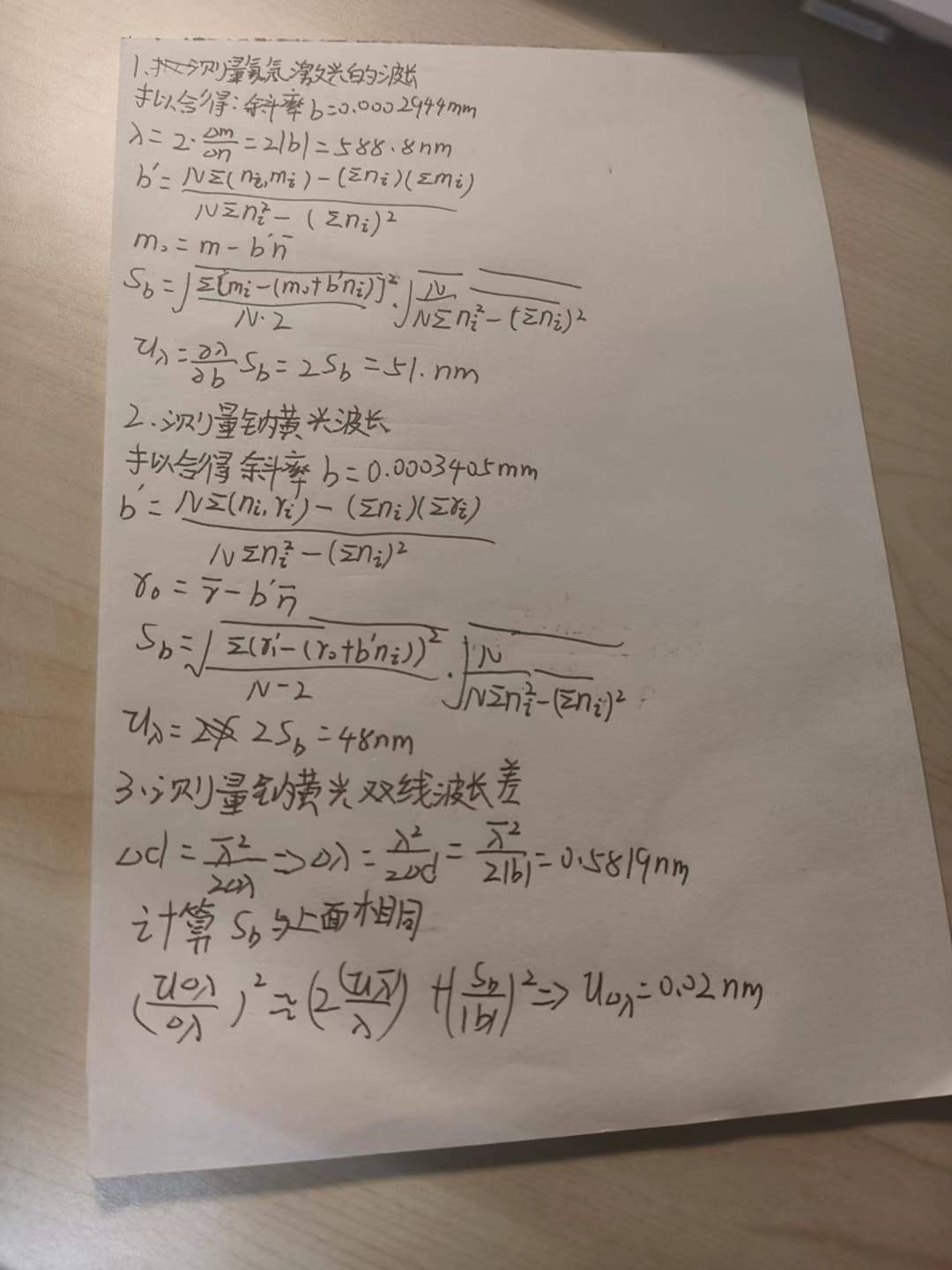 钠黄光的波长测量数据表