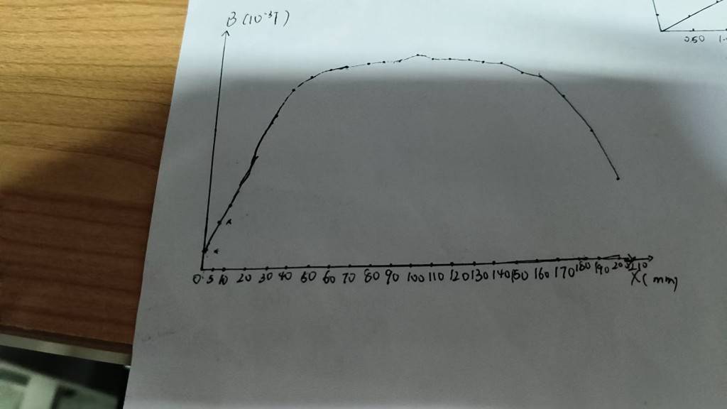 (1)根据式(8-5)算出螺线管内轴向上各位置的B值,并用坐标纸作出载流长直螺线管内轴磁场的分布曲线B-X曲线图(X为轴向位置)。